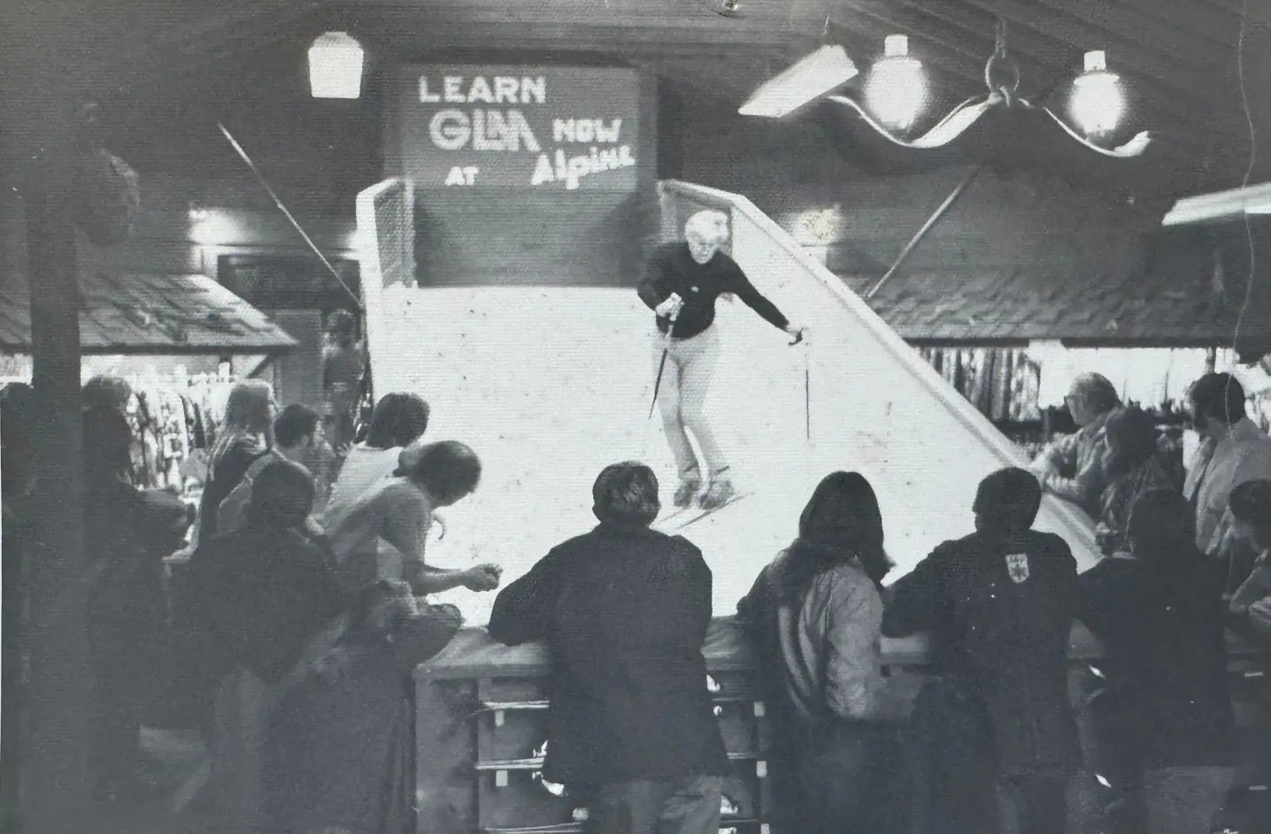 These days, customers travel from as far as Lake Placid to shop, but in the beginning, Cathy says her father had to come up with ideas to draw people from a distance. Example A: For eight years, the store offered Graduated Length Method ski lessons on an indoor ski deck (a mini ski hill set up inside the building). “My dad never did anything small,” Cathy says with a laugh.