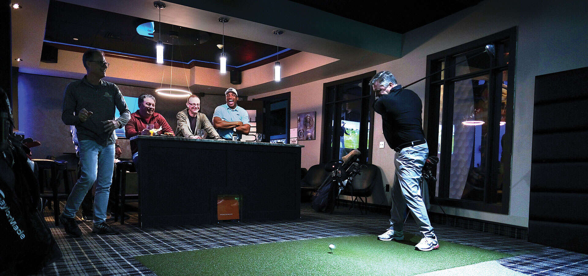 That spot turned out to be 307 Broadway, the sweeping former home of Vent Fitness on the corner of Congress Street. With two floors of action, dramatic glass doors and views to match, the location brings a sense of luxury to indoor golf. Unlike many simulators, The Bunker combines the feeling of enjoying a round of golf—and a meal and a drink—at your favorite country club with the vibe of a high-end sports bar.