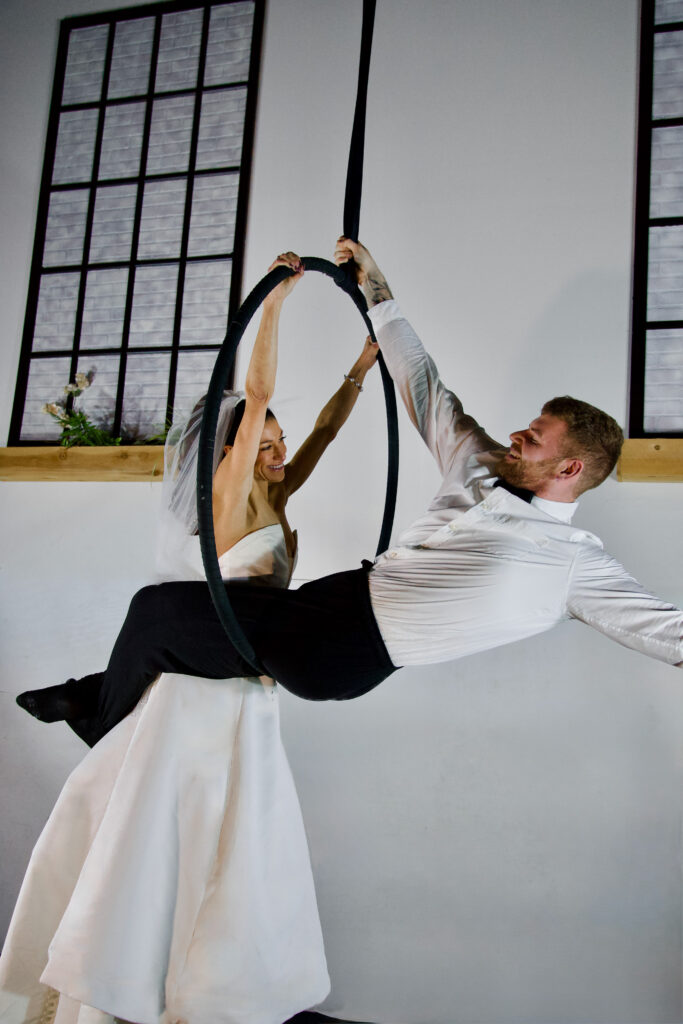 You’ve never seen a first dance like this before. Good Karma Entertainment, born out of Albany’s Good Karma Studio, has been offering aerial performances for weddings and other events for years. (Services include cocktail hour performances, Champagne-pouring aerialists, and more.) But now, the Capital Region–based company is taking things up a notch—literally.