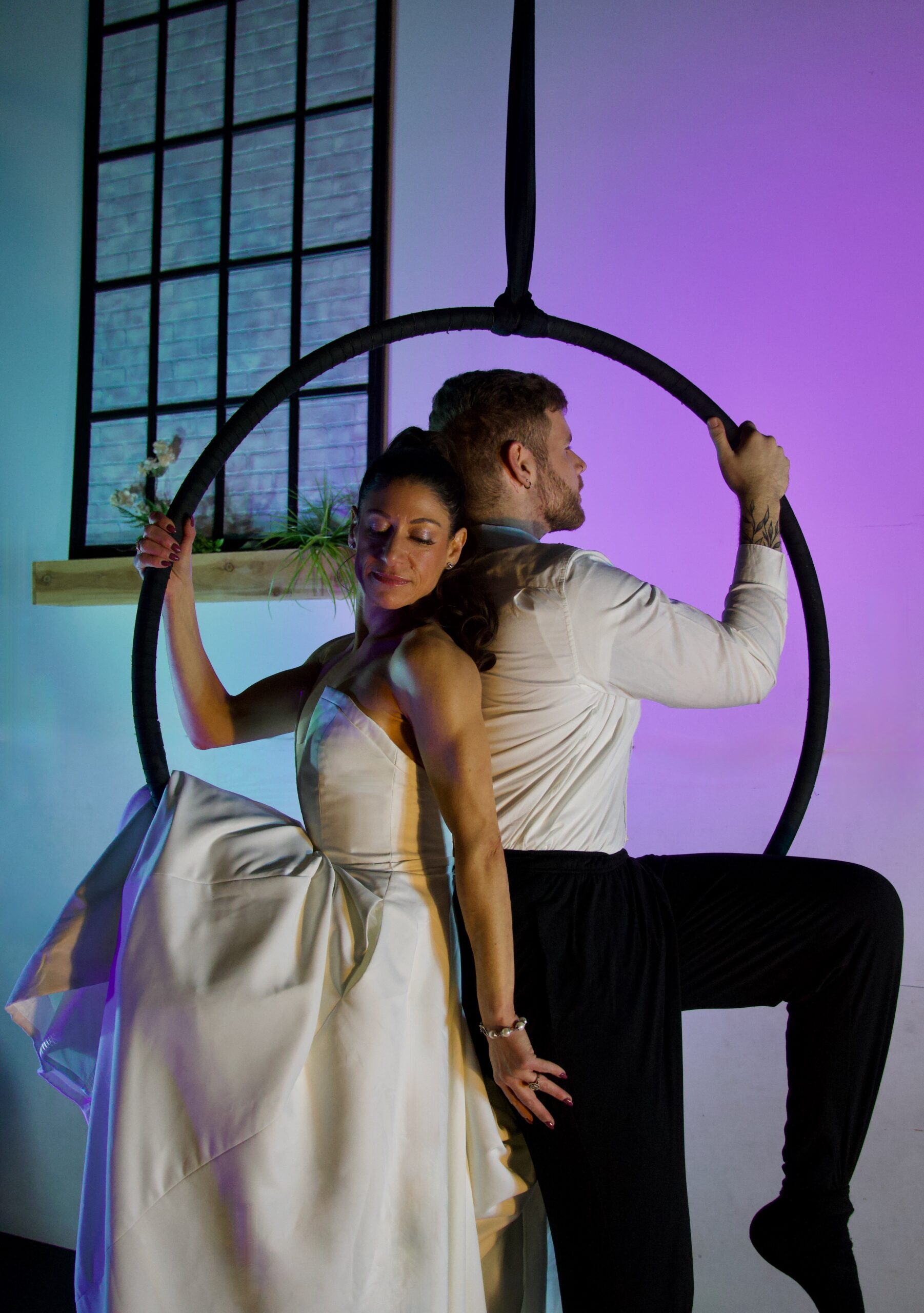 “The aerial first dance experiences is a doubles routine that’s low to the ground and easy,” says Jess Lubin, owner of Good Karma Entertainment. “The couple comes in for 6–12 weeks to learn their routine, just like they’d go to a dance studio to learn a dance routine.”