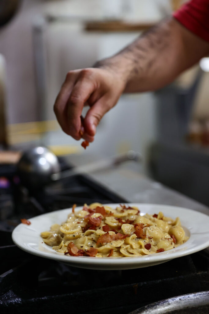 A few years later, Cardenas took his budding culinary skills to Prima Pizzeria, also in Schenectady, where he had the creative freedom to play around with different kinds of foods like chicken sandwiches and soups. Inspired by American comfort foods that he never got to eat growing up—like Chef Boyardee’s canned classics—Cardenas created his signature ravioli soup. (Little did he know, that very soup would win him Saratoga Chowderfest titles in both 2023 and 2024.)