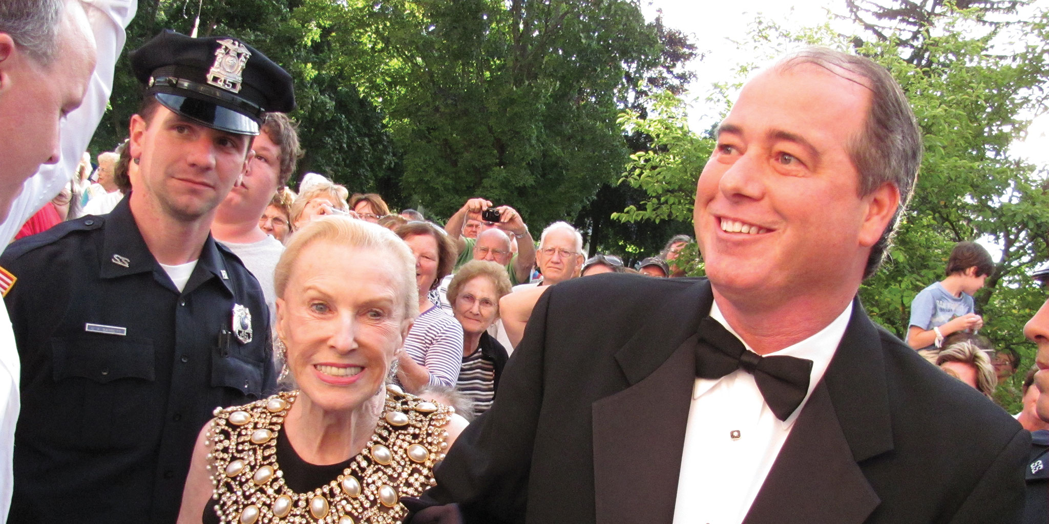 On a bluebird day this past August, I ran into John Hendrickson, Marylou Whitney’s third husband, after several years of not seeing him. He was jogging down North Broadway with a little white poodle in a stroller; I was there for a Sunday Stroll tour of historic homes. He gave me a friendly hug and introduced Lu Lu, and I snapped a quick photo of them on my phone before he jogged on.