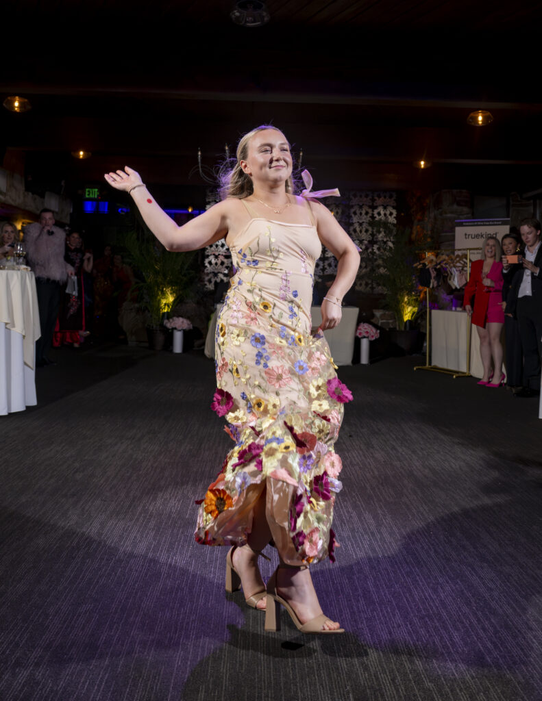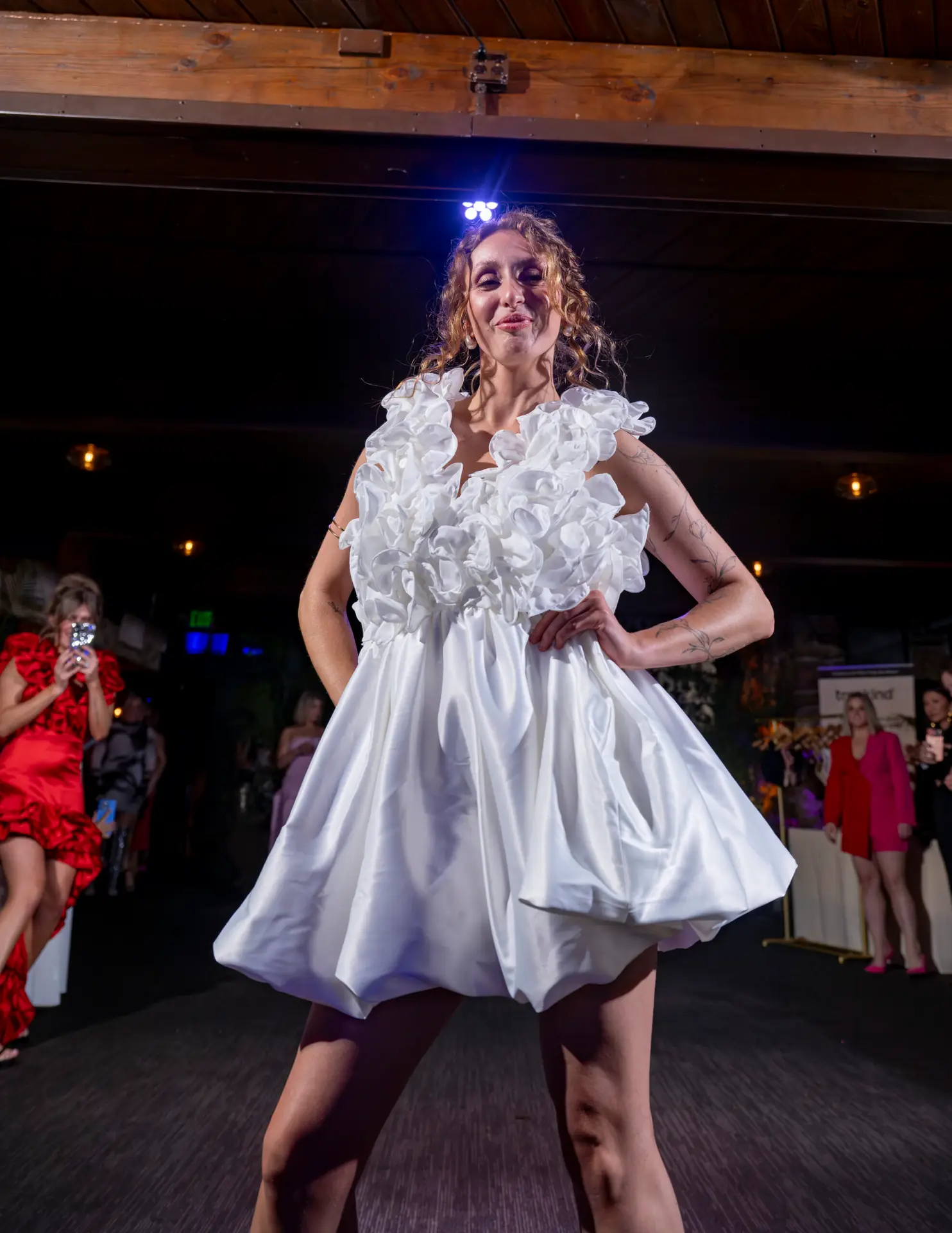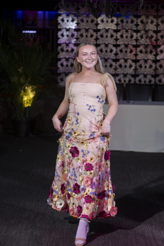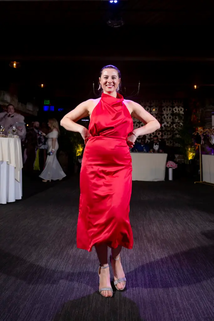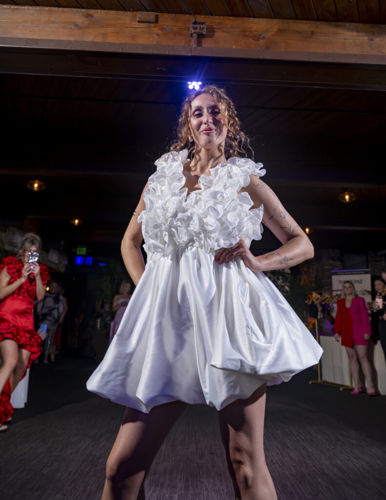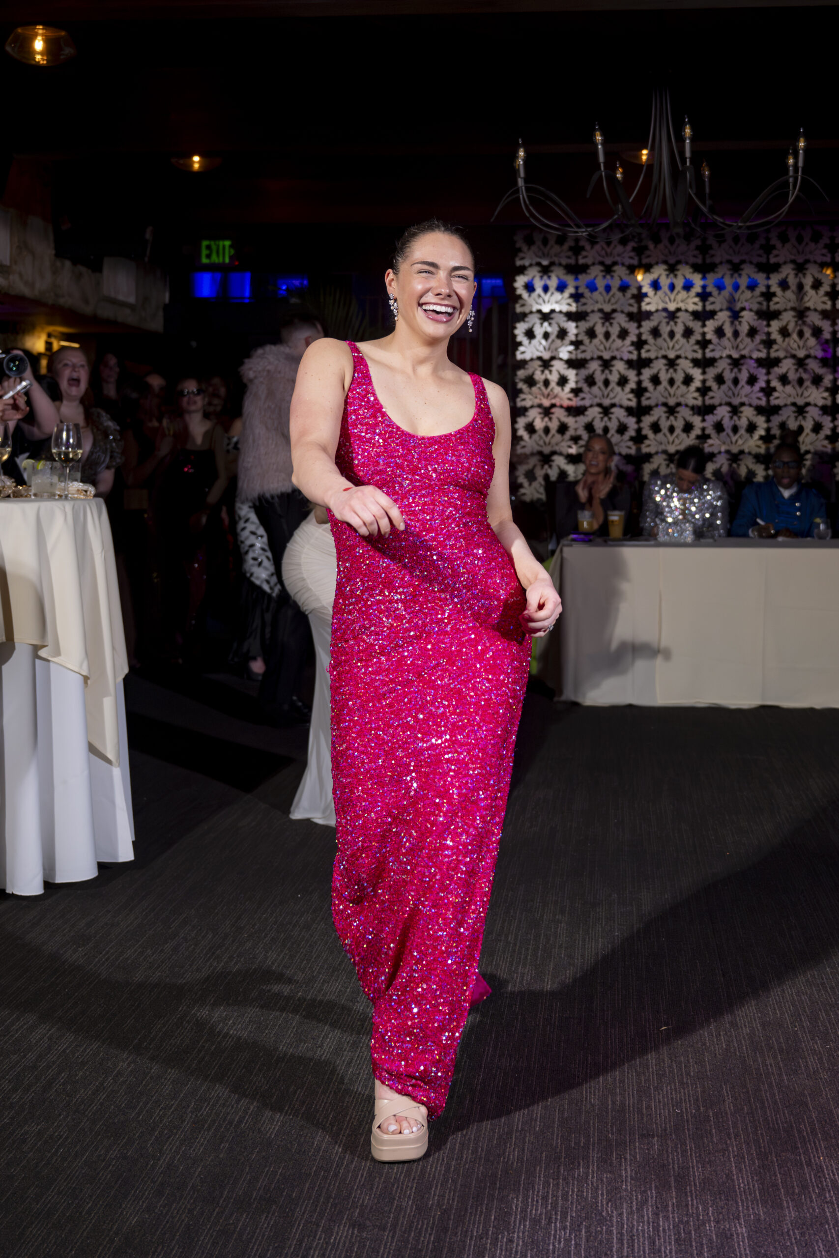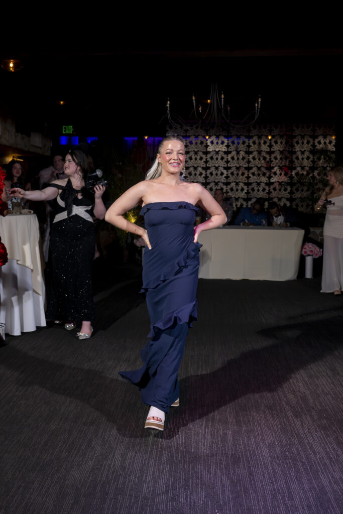 After pre-gaming with a complimentary BOP Margarita at the AC Hotel pre-party, guests arrived to a red-carpet photo op with Lidia LaPorto of SocialTini LLC before heading inside for a welcome prosecco courtesy of Bocage Champagne Bar and a Runway Rosé courtesy of Curamia Tequila. Hors d’oeuvres by Chef Elliott Vogel were passed around by the Panza’s staff as DJ Prez of Presidential Entertainment got the vibes going. Before the fashion show, attendees got bra fittings from Jené Luciani Sena of Truekind and signature Overdress stickers from Elevated Events 518’s custom vending machine.
