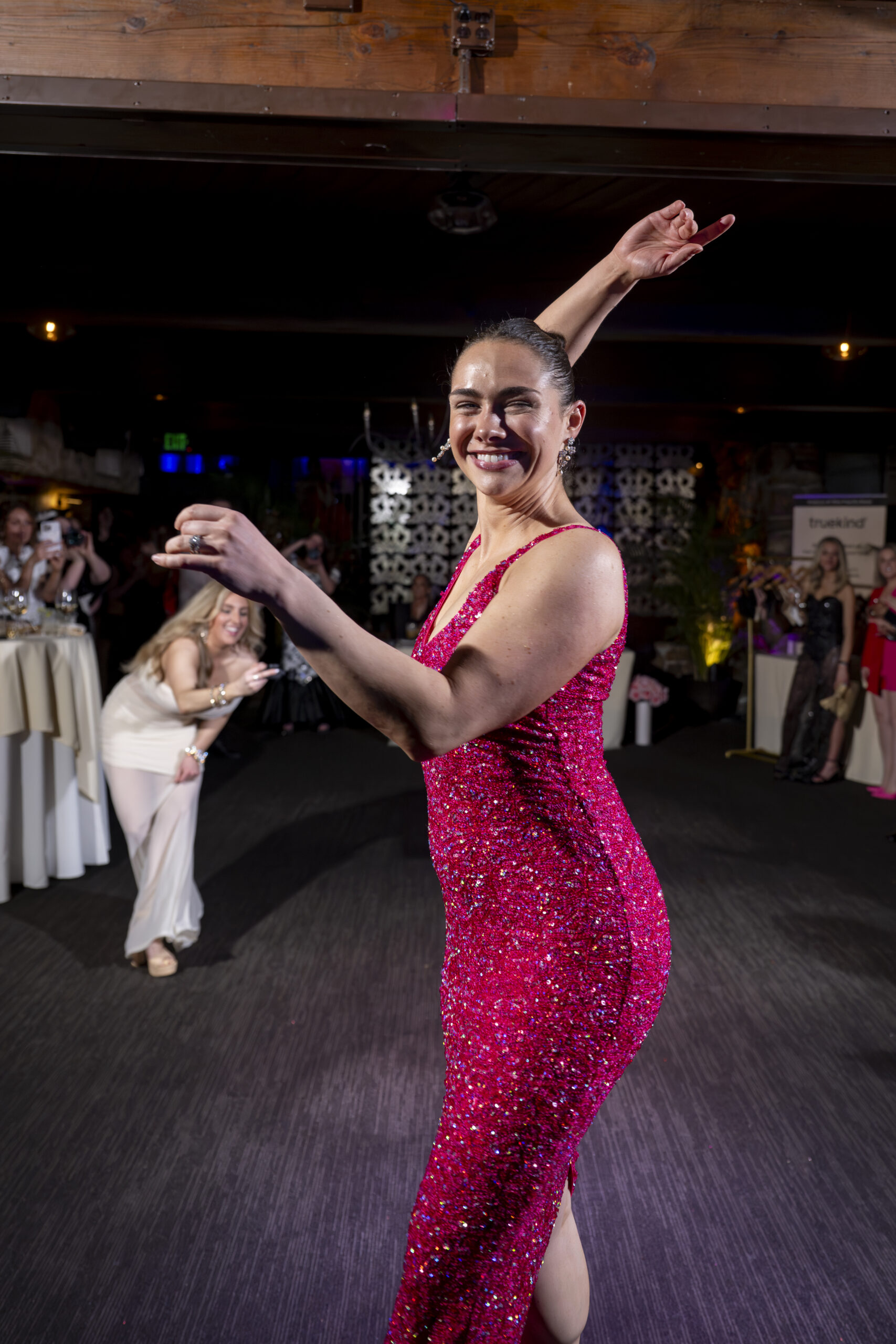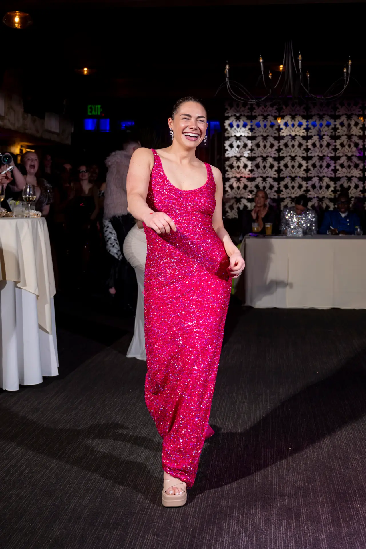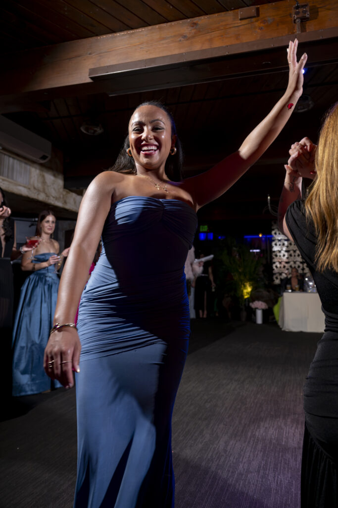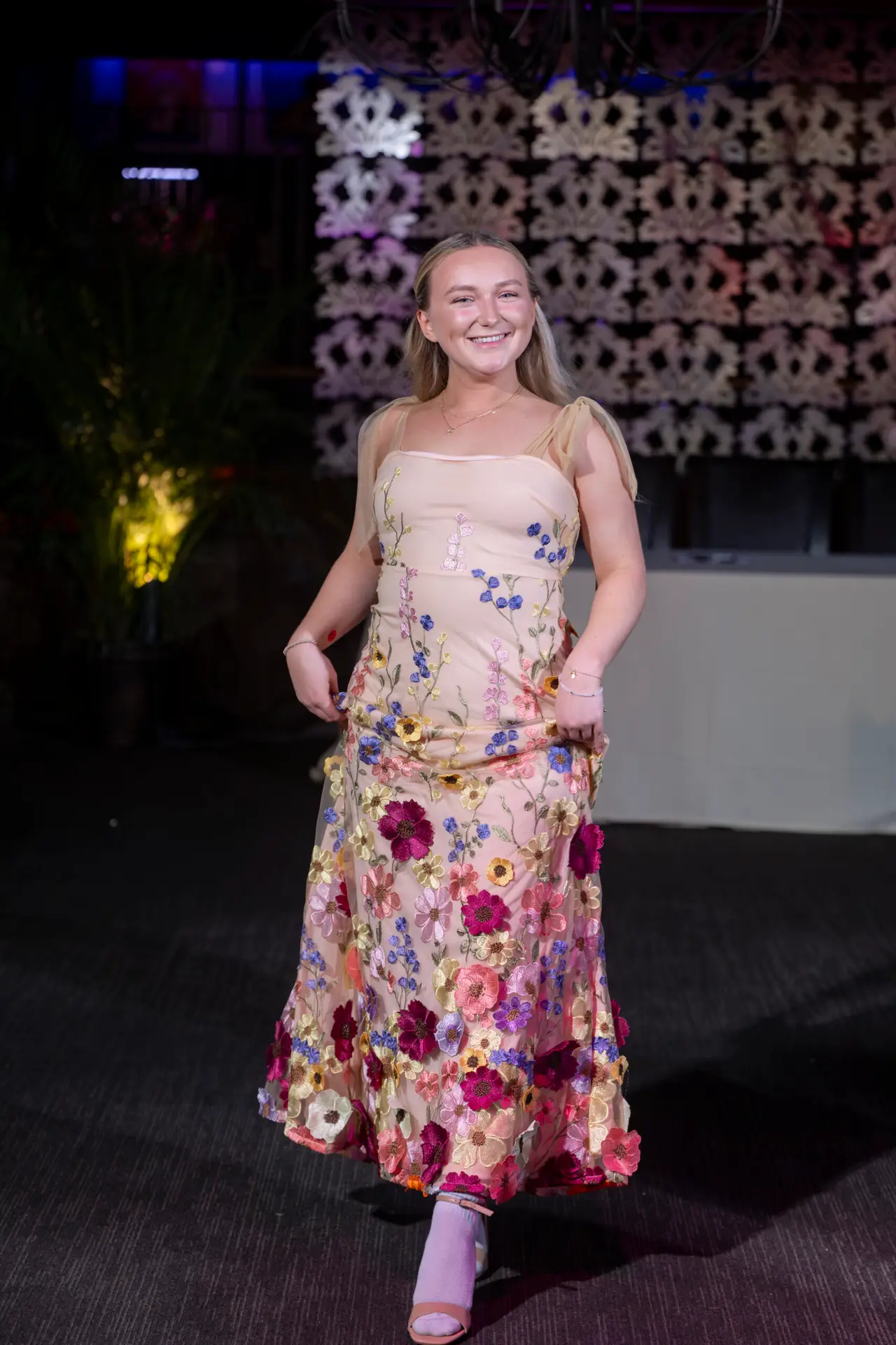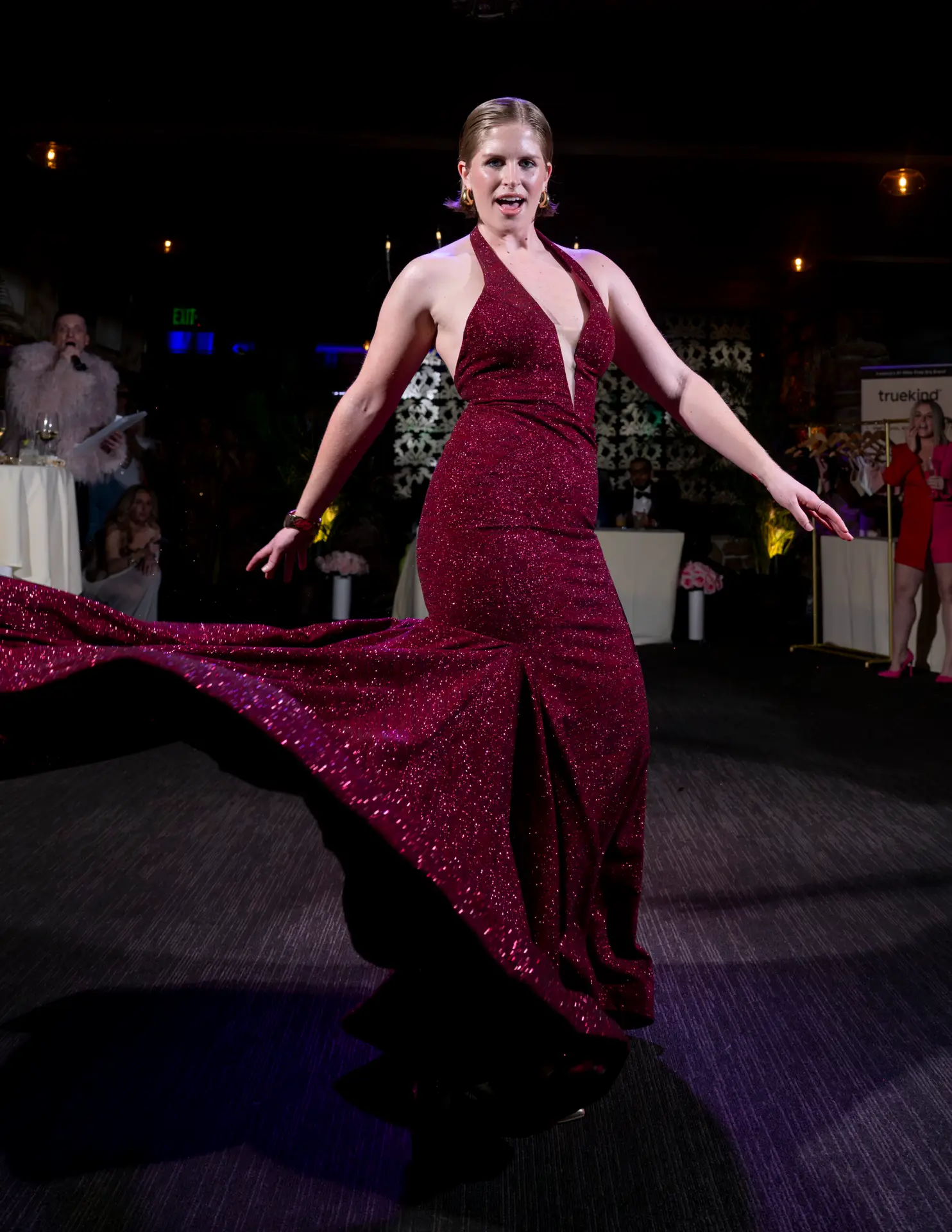 After pre-gaming with a complimentary BOP Margarita at the AC Hotel pre-party, guests arrived to a red-carpet photo op with Lidia LaPorto of SocialTini LLC before heading inside for a welcome prosecco courtesy of Bocage Champagne Bar and a Runway Rosé courtesy of Curamia Tequila. Hors d’oeuvres by Chef Elliott Vogel were passed around by the Panza’s staff as DJ Prez of Presidential Entertainment got the vibes going. Before the fashion show, attendees got bra fittings from Jené Luciani Sena of Truekind and signature Overdress stickers from Elevated Events 518’s custom vending machine.