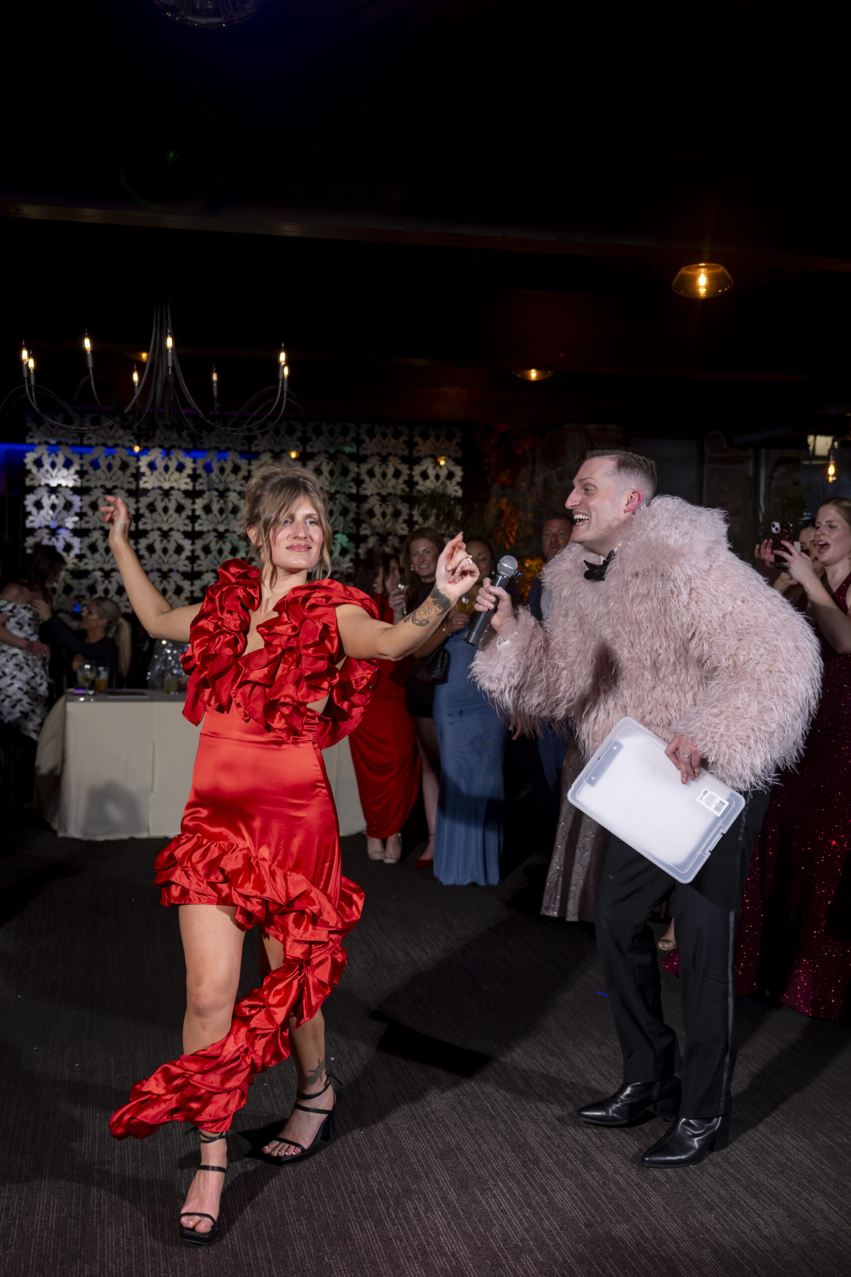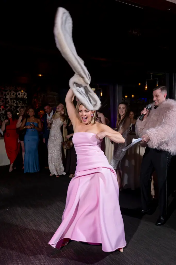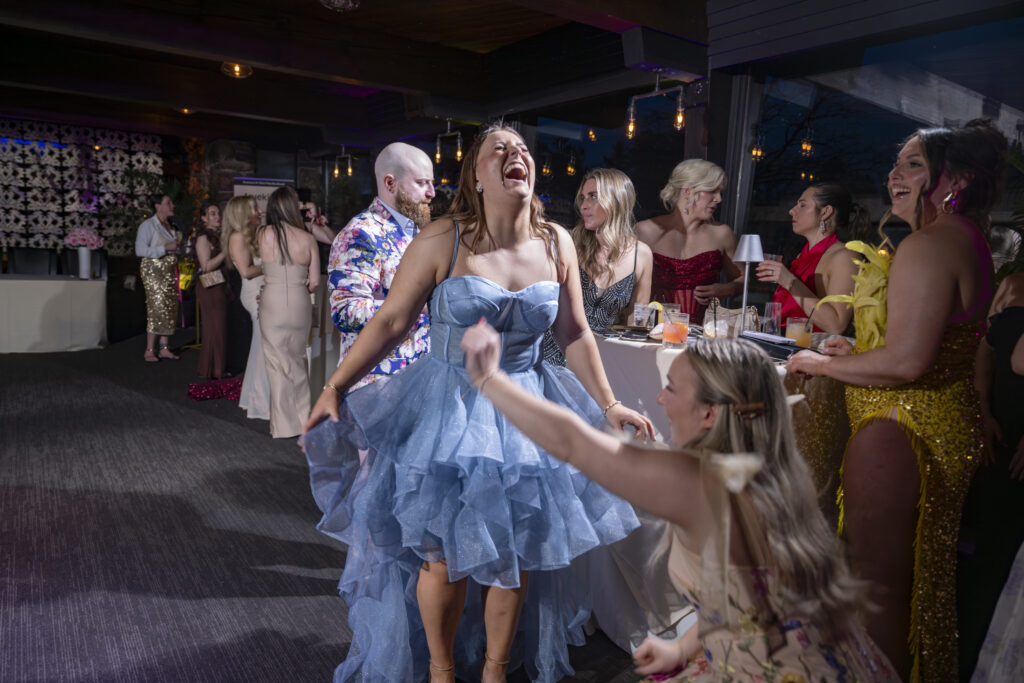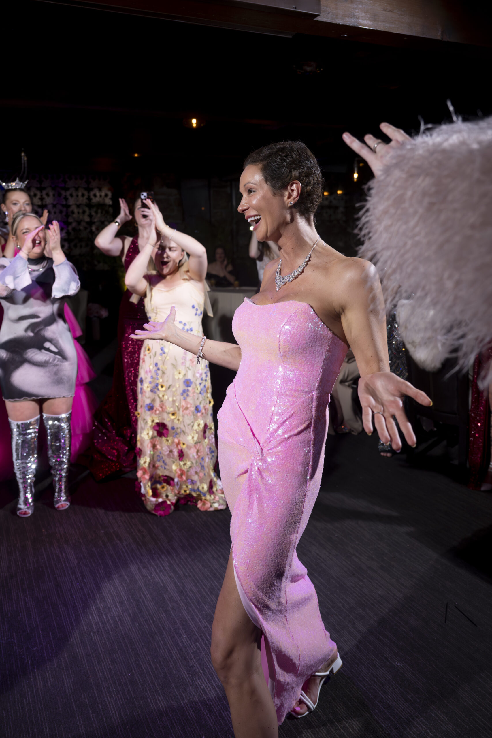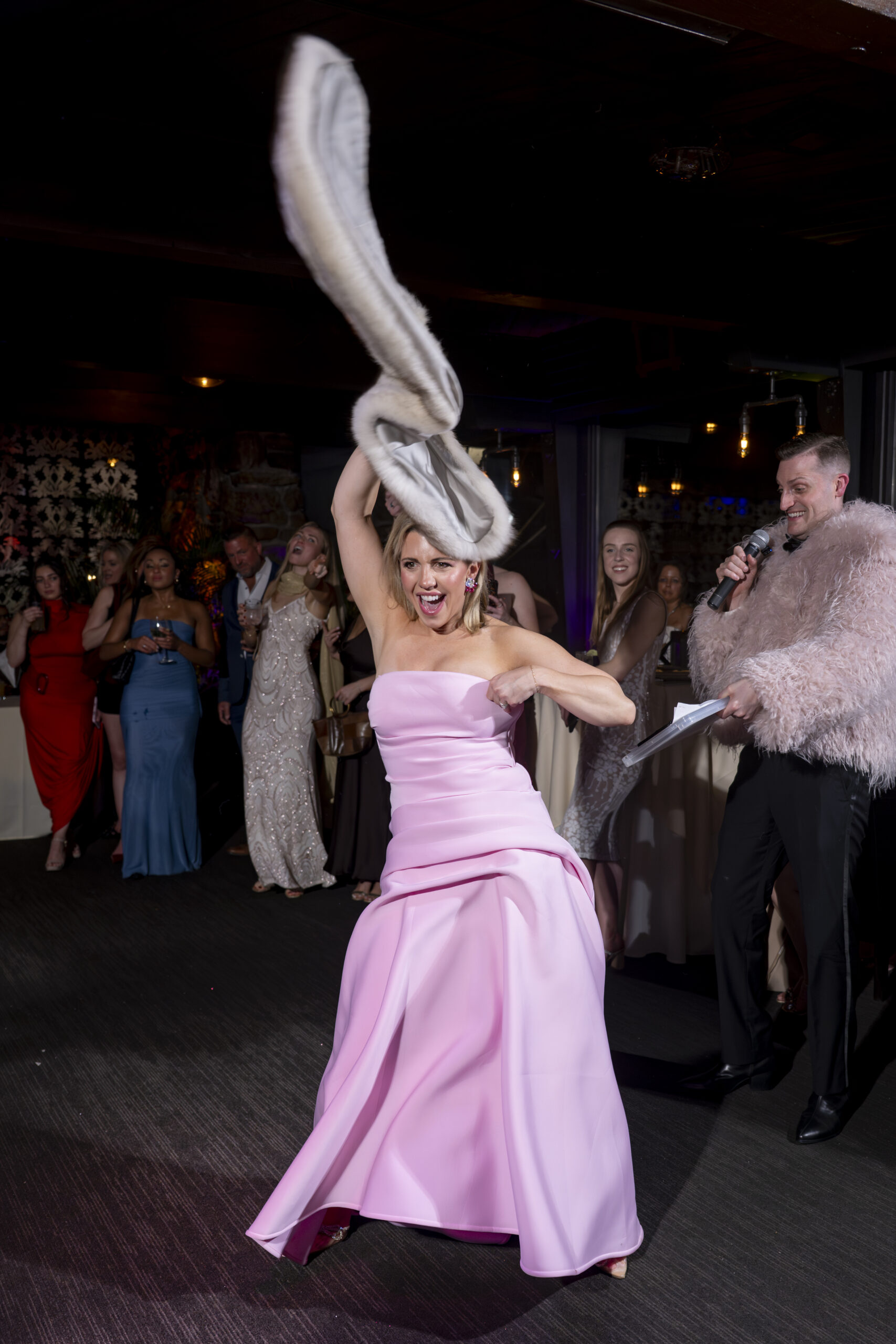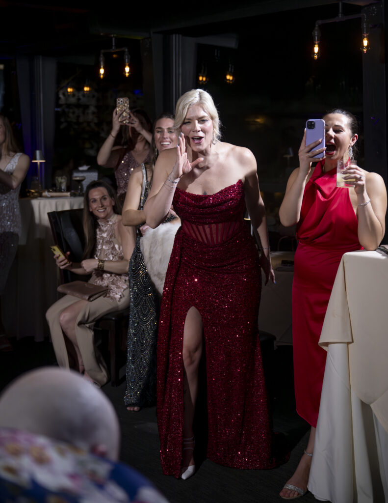 After pre-gaming with a complimentary BOP Margarita at the AC Hotel pre-party, guests arrived to a red-carpet photo op with Lidia LaPorto of SocialTini LLC before heading inside for a welcome prosecco courtesy of Bocage Champagne Bar and a Runway Rosé courtesy of Curamia Tequila. Hors d’oeuvres by Chef Elliott Vogel were passed around by the Panza’s staff as DJ Prez of Presidential Entertainment got the vibes going. Before the fashion show, attendees got bra fittings from Jené Luciani Sena of Truekind and signature Overdress stickers from Elevated Events 518’s custom vending machine.