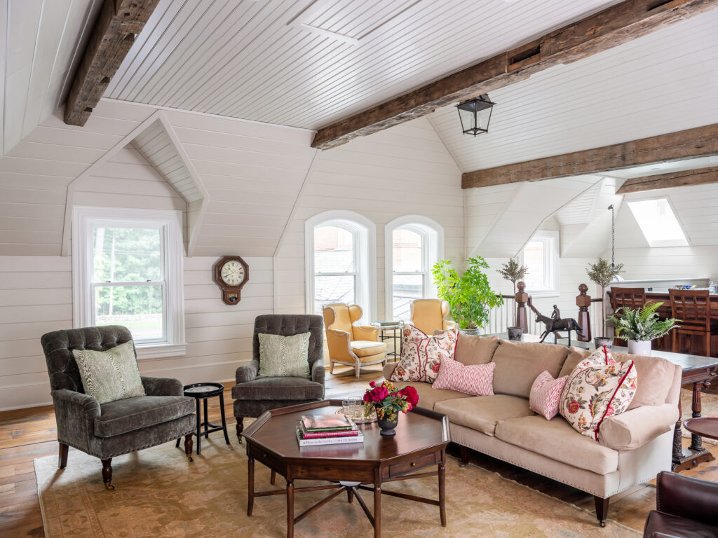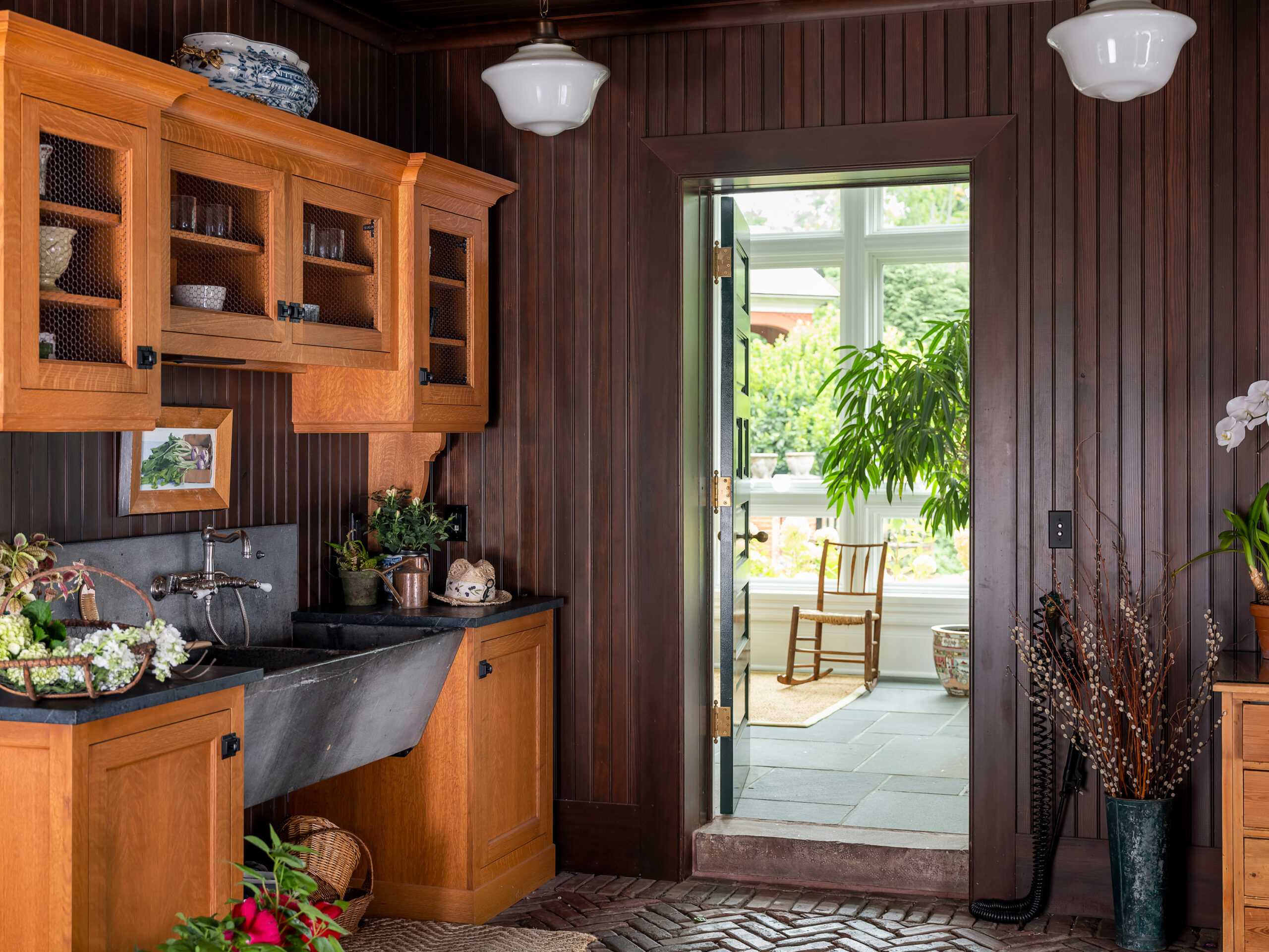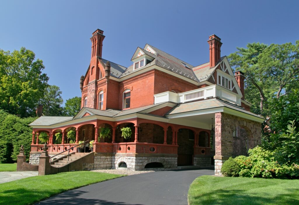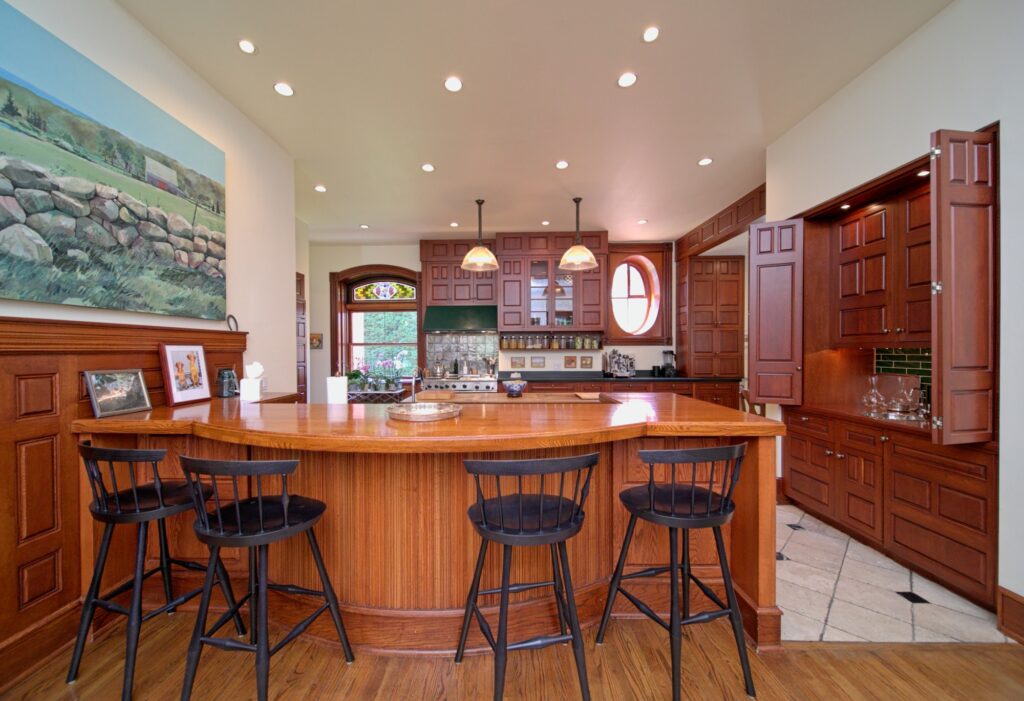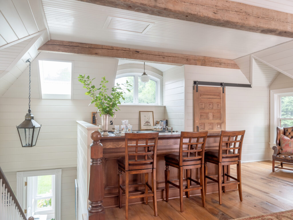 Built in 1886, Redstone, as it’s known, was designed by architect S. Gifford Slocum for Eli Clinton Clark, a prominent lumber businessman. The home’s most recent owners have lived there for nearly 15 years and are responsible for the construction of the onsite carriage house, which boasts a heated two-car garage with a potting sink, a skylit mudroom breezeway, a year-round sunroom, a full bathroom, a vaulted great room with a custom bar area, a sun-filled cupola, and plenty of additional storage space. Designed by architect Tom Frost and built in 2015 by Northern Dean, the new structure blends seamlessly with the historic home next to which it stands.