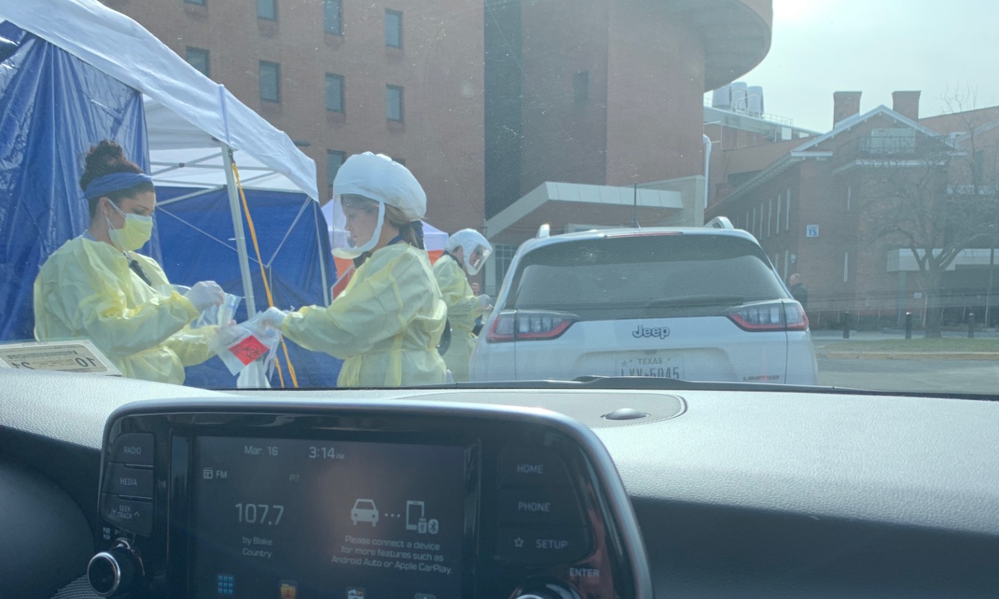 I got tested at Albany Med. I drove up to the Emergency Department and rolled down my window and said, “I’m here to get tested for COVID-19.” And the lady said, “Are you really?” I said, “Yes, I have an appointment.” And she said, “You have an appointment?” And I said, “Yes.” And she said, “What time?” And I said, “Right now: 3:15.” And then she let me through. Then I rolled down my window again, because there was another man waving, and we had the exact same conversation. Then I pulled my car up—I never had to get out of it. I kept asking people if Molly [Erica’s roommate] could get tested, and they kept telling me no, even though she was with me and had a known contact, which was me. And then I rolled down my window one more time, and they stuck some swabs in my nose and my throat. The whole process took about eight minutes.